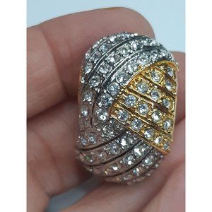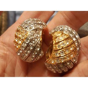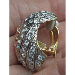 Vintage Earrings Clip On Glamour Rhinestone Heavy Unsigned Gold And Silver Toned