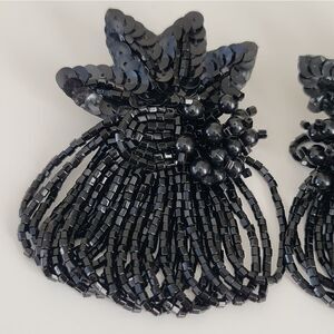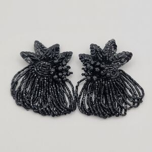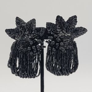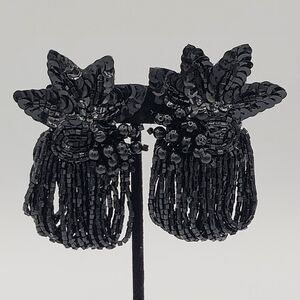 Vintage Earrings Handmade Black Floral Beaded Sequin Gatsby Earrings #452