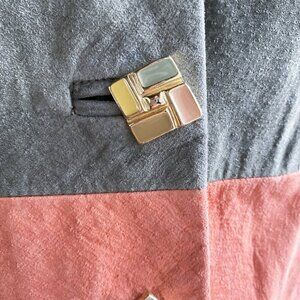 Vintage Earth Tones Colourblock Suede Button Down Cropped Short Sleeve Jacket S