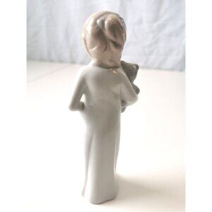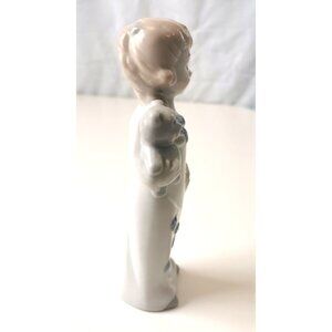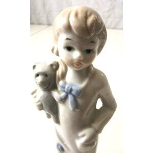 Rarely seen sweet little porcelain figurine of a young girl holding a teddy bear – likely manufactured in the GDR (East Germany) circa 1950s