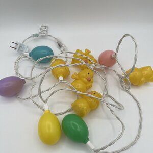 Vintage Easter String of 10 Lights IN BOX Chicken & Eggs Blow Mold Decor WORKS