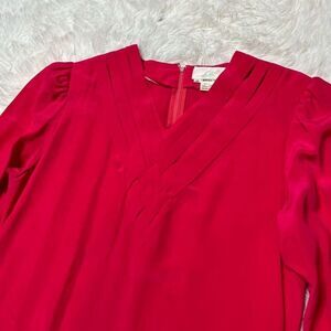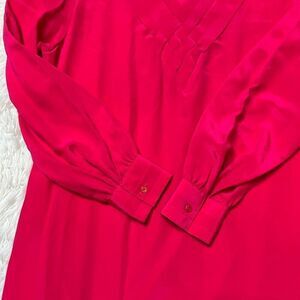 Vintage Eaton Dress Size 14 Large Pink 100% Silk 90's Retro V-neck Lightweight Long Sleeve