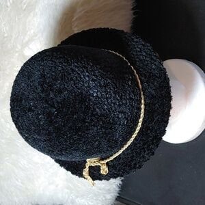 Vintage Eaton Trilby Black with Gold Cord Chenille Hat