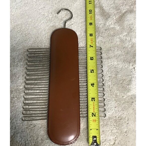 Vintage Eatons Metal Tie Rack With Brown Leatherette Cover & Hook