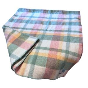 Great condition, vintage Eaton's wool blanket, featuring a pretty soft pastel tartan plaid.