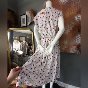 Vintage Eclectic Abstract Dot Dress - Red and White