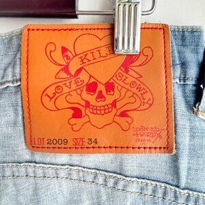 Vintage Ed Hardy Light Wash Relaxed fit 100% Cotton Lightweight Jeans 34x34.