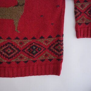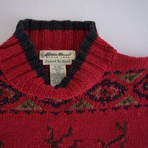 Vintage Eddie Bauer Hand Knit Red Wool Deer Sweater Fair Isle Alpinecore SP