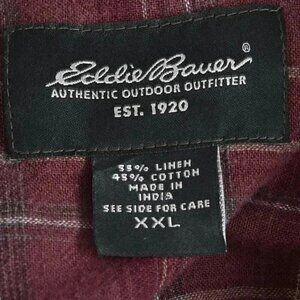 Vintage Eddie Bauer Linen Blend Plaid Short Sleeve Shirt Button Down Size XXL
