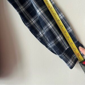Authentic vintage Eddie Bauer men’s long sleeve shirt in classic navy plaid. Made from 100% cotton and specially dyed for a soft, lived-in feel. Features a button-down front, dual chest pockets with button closures, and a relaxed fit. Tagged size Large. Made in Sri Lanka.