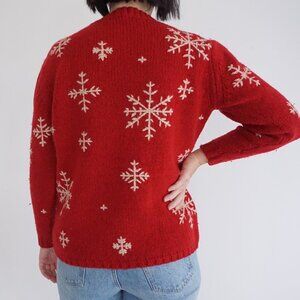 Vintage Eddie Bauer Red Wool Snowflake Sweater M | Cozy Winter Holiday Ski Lodge