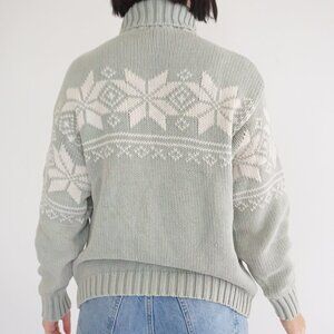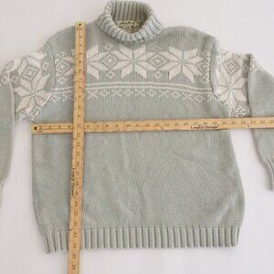 Vintage Eddie Bauer Sage & White 100% Cotton Snowflakes Turtleneck Sweater M