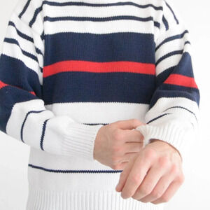 Vintage Eddie Bauer White with Red and Blue Stripes Knit Crewneck Sweater L