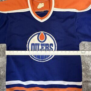 Vintage Edmonton Oilers Hockey Jersey Size Small NHL Blank Blue Orange Maska