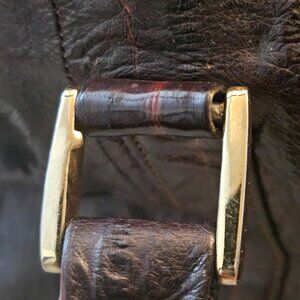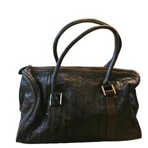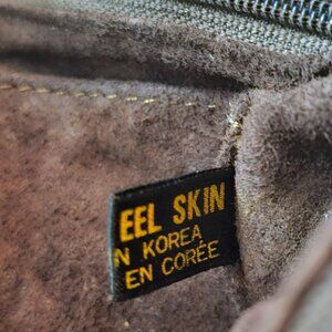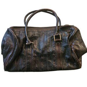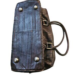 Vintage Eel Skin Genuine Leather Brown Handbag With Double Handles & Zip Closure