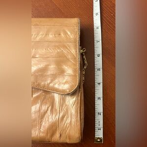 Vintage 80s drugi opci sabor genuine eel skin purse clutch/shoulder bag. Gray suede lining with 2 compartments. Extremely narrow zipper compartment that fits nothing lol.
