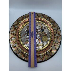 Vintage Egyptian Brass Wall Decor Plate King Ramses on a Chariot 11.5"