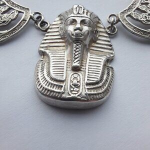 Vintage Egyptian Revival 800 Silver Statement Necklace Pharoah King Tut Art Deco