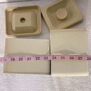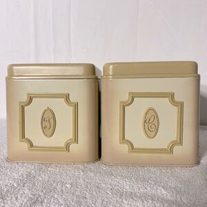 Vintage Ekco Beige Painted Metal Coffee Tea Canisters W Plastic Lids