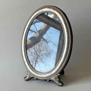 Vintage Elegance® Silver Plated Oval Decorative Picture Frame w/ Patina Footed