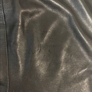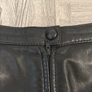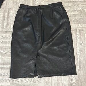 Sleek black genuine leather pencil skirt. Perfect for a sophisticated look. Has some damage shown in pictures.