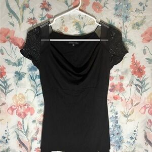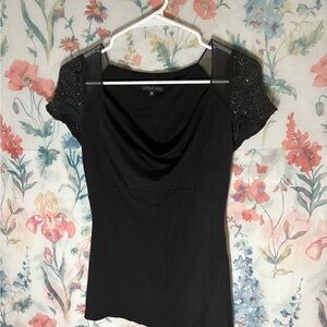 This elegant black short sleeve top is perfect for any occasion. The sleek design and comfortable fit make it a versatile addition to your wardrobe.