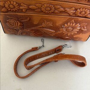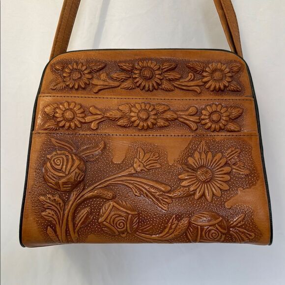 Vintage Elegant Floral Embossed Tan Leather Bag like new