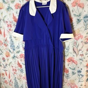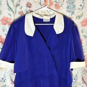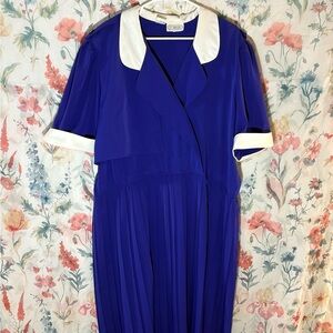 This elegant purple dress features stylish white accents, perfect for any occasion. Its sophisticated design offers a timeless look.