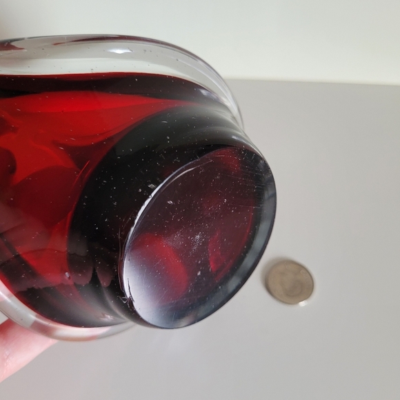 Vintage Elegant Red Clear Encased Glass Dish Sculpture Murano Trinket Bowl Art glass