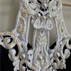 Vintage Elegant Velvet Black Dress with Lace and Glitter Neck Detail - Size 2