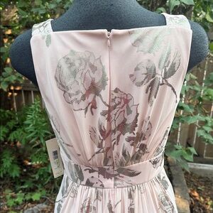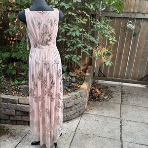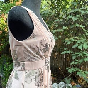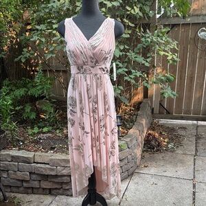 Vintage Eliza J Elegant Floral Pink hi lo flowy dress gold metallic & pink. Sz 4
