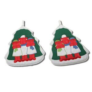 Vintage Embroidered Christmas Tree Carollers Padded PotholdersOven Mitts Holiday Set of 2