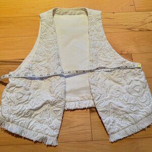 Vintage Embroidered Cotton Canvas Crop White Mini Vest Western Boho Fringe