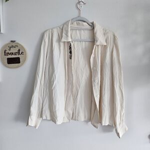 Super cool vintage cream blouse with unique embroidery on the neckline and button front buttons.