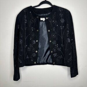 Vintage Embroidered Grunge Preppy Boho Chic Floral Genuine Leather Jacket Small