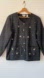 Vintage. Jessica Sport. Embroidered flowers. Wool blend: 60% wool, 22% nylon, 18% other. Fully lined. No collar. Charcoal grey. Excellent condition. Boxy shape. Button front. Two front patch pockets.