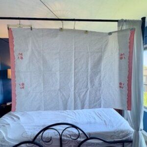 Vintage Embroidered Monogrammed Linen Tablecloth