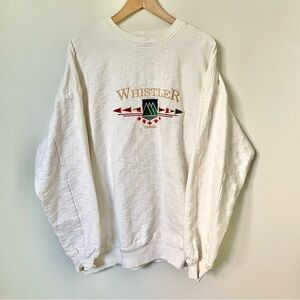 Vintage Embroidered Whistler Canada Sweatshirt White Size Extra Large. Super cute woven fabric look. No size or materials tag but fits like an oversized XL. Excellent condition.