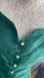 Amazing vintage green taffeta off-the-shoulder blouse with puff sleeves and button closures. The shimmery fabric and structured silhouette suggest it is likely from the 1980s. Likely handmade as there are no brand or fabric tags.