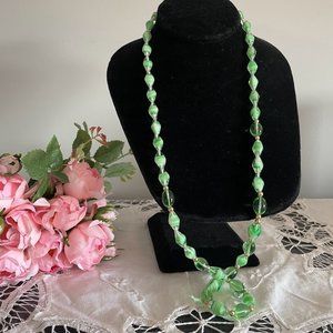 Vintage Emerald Green Venetian Glass Necklace, 1960s Murano Beads