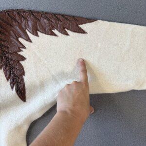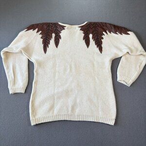 Vintage Emilio Rossi Lambswool Angora Sweater White Knitted Brown Leafs Sz M