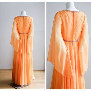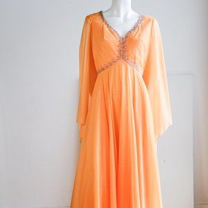 Vintage Empire Waist Beaded Wizard Sleeve Gown