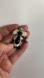 Charming black and white cartoon cat brooch. Perfect for adding a playful touch to any outfit.
