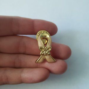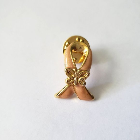 Vintage Enamel Peach Ribbon with Butterfly Pin