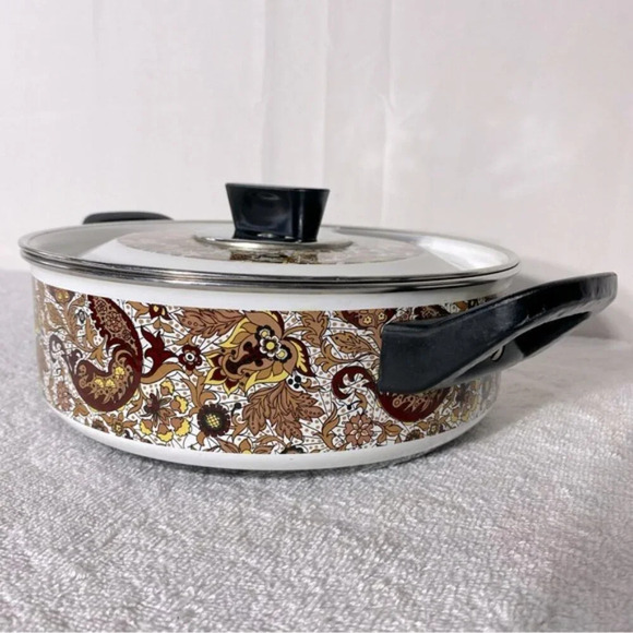 Vintage Enamelware Brown Fancipans Sauce Pan With Lid