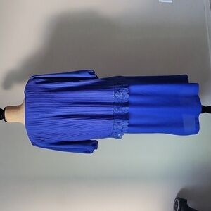 Made in canada Vintage EncoreRoyal Blue Swing Dress Bow tie 🎀 ,lacey detailing attached. Has an elasticated skirt attached at the waist with the help of the lining to make a cute dress. The fabrics are a bit stretchy. Preowned in great condition from smoke, pet free home.