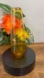 Vintage Enesco Amber Glass Vase Gold Rim Grapevine Design Japan MCM Home Decor