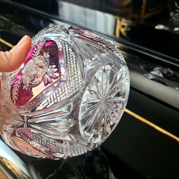 Vintage Enesco crystal bowl rose design.