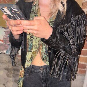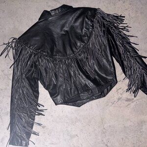 Vintage Enrel Black Genuine Leather Fringe Jacket Small