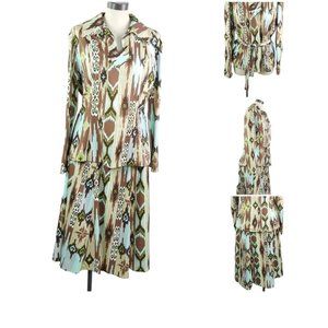 Vintage Ensemble women sz 18 mint brown green Dress Blouse and Pullover skirt